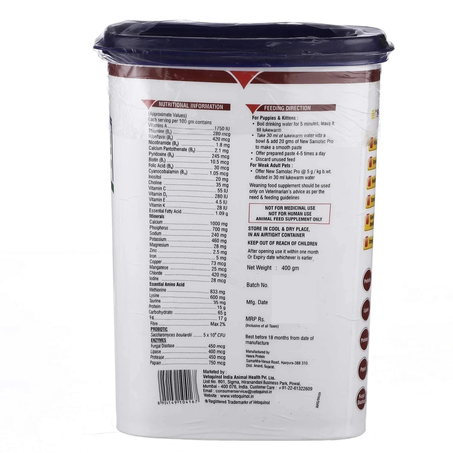 SAMOLAC PRO WEANING FEED SUPPLEMENT FOR PUPPIES ABD KITTENS 400G